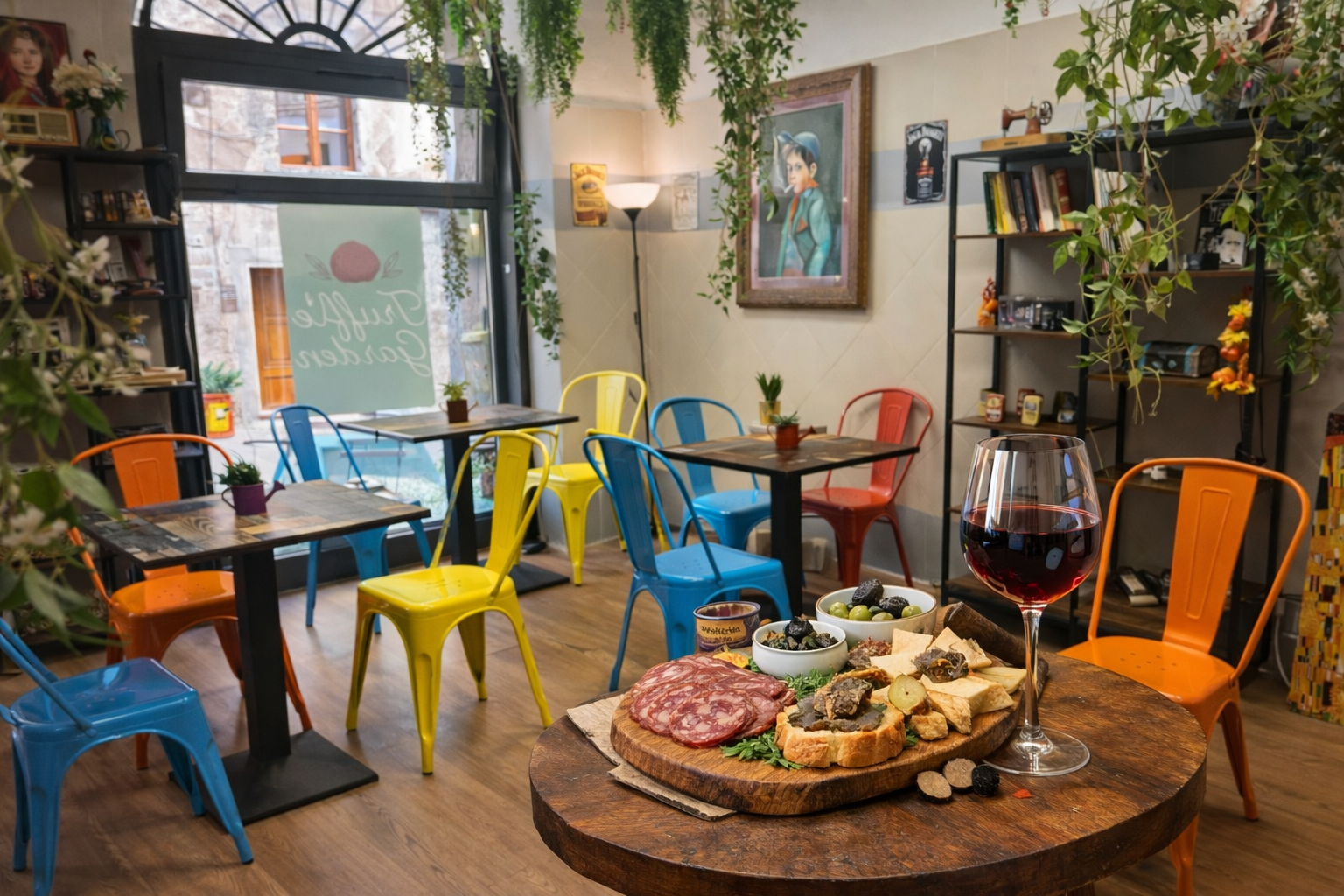 Salumi e formaggi locali selezionati, pane e crostini artigianali, verdure fresche e piccoli assaggi preparati al momento compongono taglieri ricchi ed equilibrati.